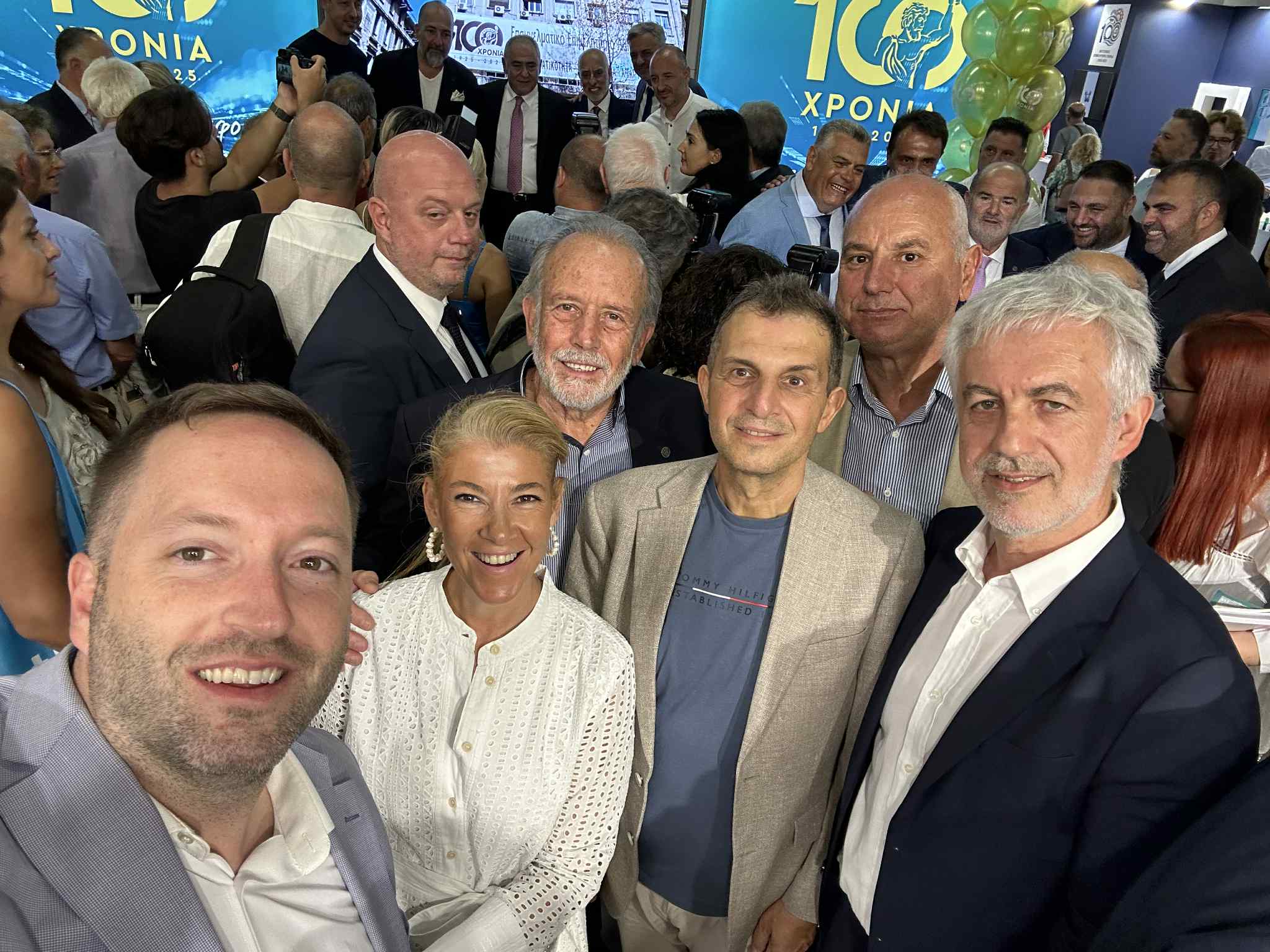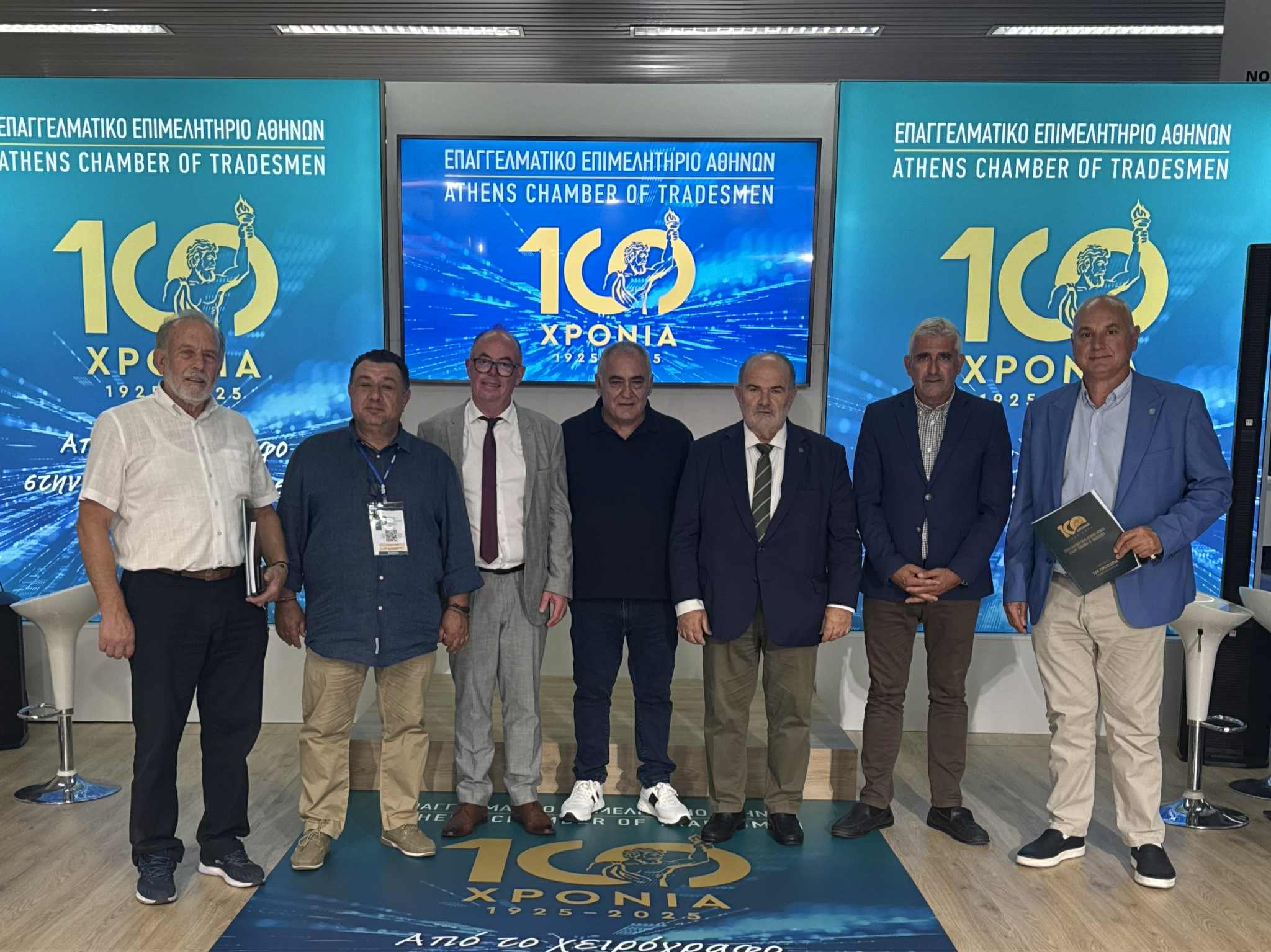 Μεταξύ άλλων εκδηλώσεων, είχαν την χαρά να παρευρεθούν στα εγκαίνια του περιπτέρου του Επαγγελματικού Επιμελητηρίου Αθηνών στη ΔΕΘ, όπου ο Πρόεδρος του Ε.Ε.Α, κ. Γιάννης Χατζηθεοδοσίου - ο οποίος είναι και μέλος της Ομοσπονδίας μας - υποδέχτηκε θερμά όλους όσους συμμετείχαν στην πρώτη μεγάλη εκδήλωση του Ε.Ε.Α για τη συμπλήρωση ενός αιώνα προσφοράς και δημιουργίας.