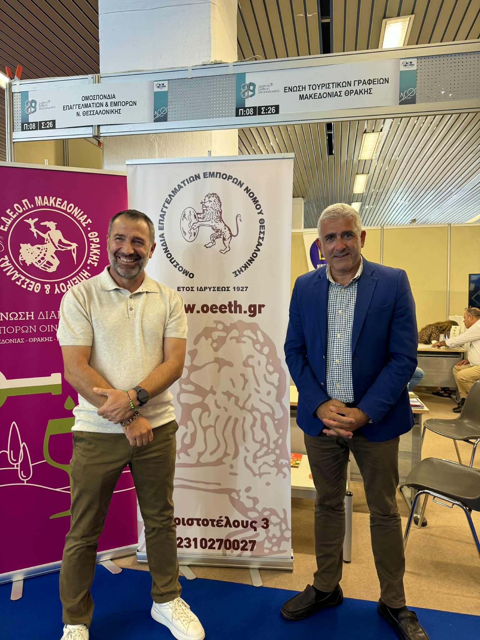 Στη φωτο από αριστερά ο Πρόεδρος της ΟΕΕΘ κ. Καρασαββίδης με τον Γ. Γραμματέα της Ο.Ε.Β.Ε.Α.κ. Δαβερώνη.