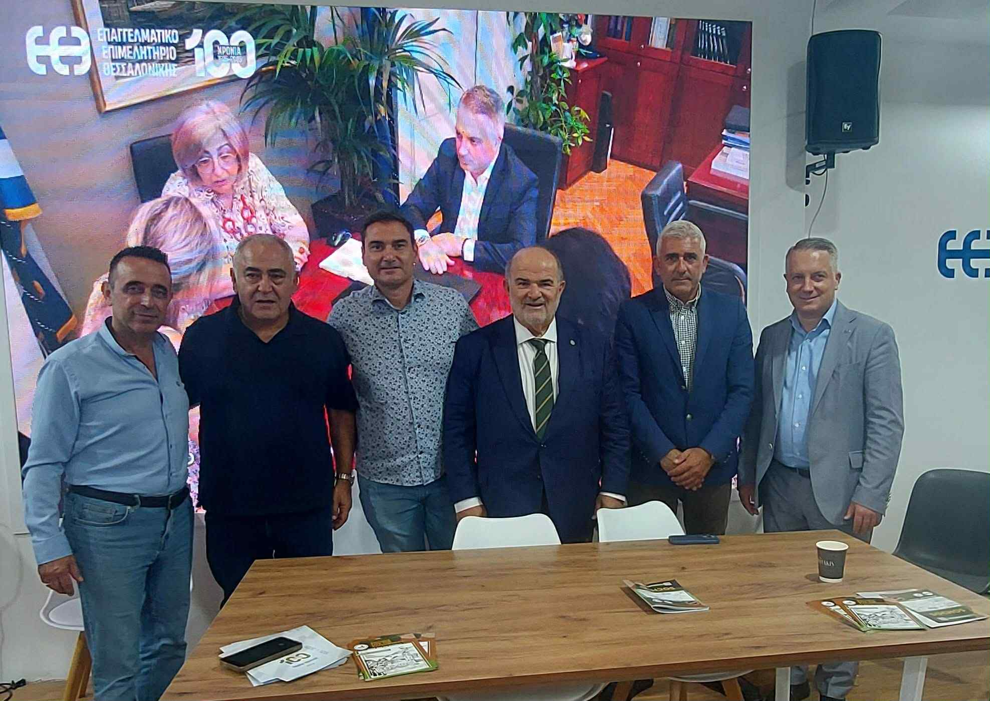 Στη φωτο από αριστερά ο Αντιπρόεδρος της Ο.Ε.Β.Ε.Α. κ. Λιάγκας, ο Πρόεδρος της ΟΕΒΕ Θεσσαλονίκης κ. Καρασσαβίδης, και ο Πρόεδρος της Ο.Ε.Β.Ε.Α. κ. Μάνδρος.
